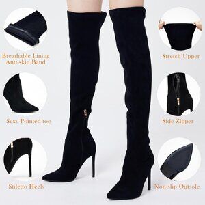 Wearing Comfort Guaranteed: The pointed toe thigh high heeled boots adpots flexible suede fabric that makes it stretch to adjust any legs, calves in a perfectly-presented fitting shape. Strechy knee high boots with heel gives perfect skin fitting touch while make you embrace a elongated sexy legs for women in fall, winter season.