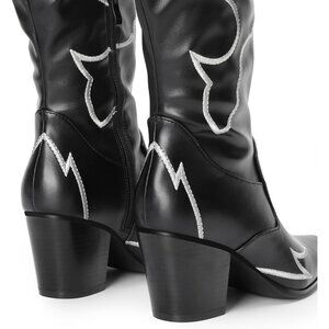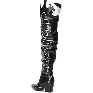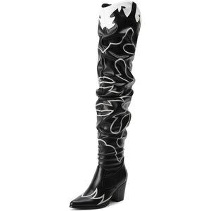 Women Black Faux Suede Over The Knee Thigh High Western Pointed Toe Boots