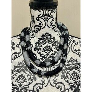 This Women's Black Jet Reptile Festival Whimsigoth 42in Necklace Earrings Set is a striking jewelry ensemble perfect for a variety of occasions including Christmas, weddings, birthdays, and more. The set features a black and white color scheme with a gothic, whimsical theme, making it a standout accessory. The pieces are signed by the brand Da Vinci and are made of glass, mesh, and zinc metal with rhinestone and crystal secondary stones. This necklace and earrings set is designed for a festival or Halloween-inspired look, offering a touch of witchy charm to any outfit.