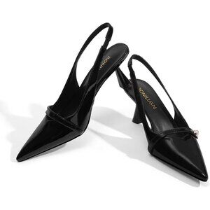 🆕Women Black Kitten Sling Back Low Heel Pumps Closed Pointed Toe Pearl Heels