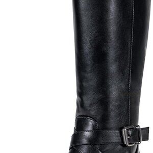 Women Black Knee High Riding Boots with Buckle and Zipper, Wide Calf, Size 8