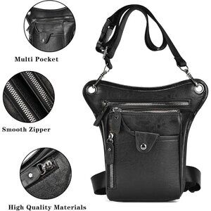 【Leather Drop Leg bag for men /women fashion purse】:Multiple Compartments artificial leather Hip Bag: 4 main sections pocket can keep multiple items neatly, Good construction, comfortable carry, enough place for carrying up,ideal for motorcycle, bike, riding, cycling, travel, outdoor, sports, hunting, hiking, tactical military, running, fishing, walking, jogging, camping, all kinds of outdoor activities and daily use.