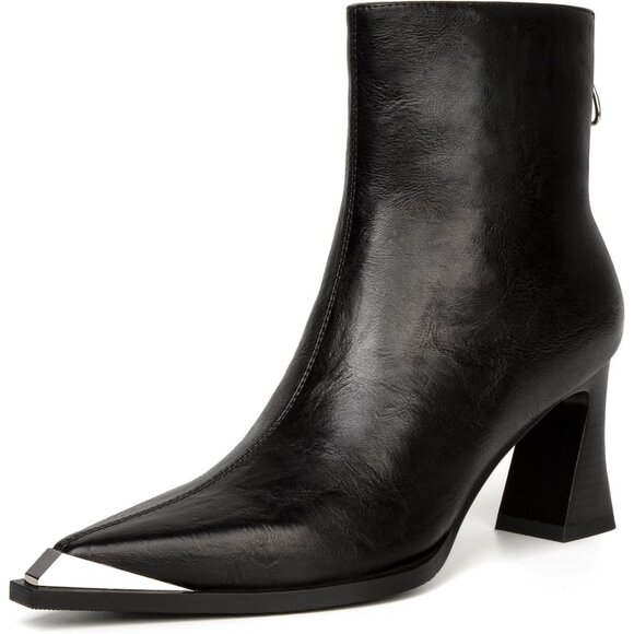 The metal pointed-toe design of these ankle boots is sleek and stylish, which is ideal for a simple chic look.