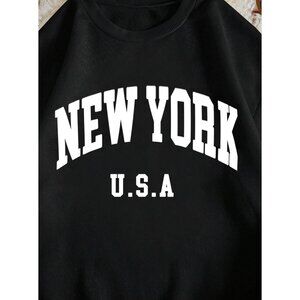 ⚡Women Black New York Imported Graphic Crewneck Long Sleeve Pullover Sweatshirt