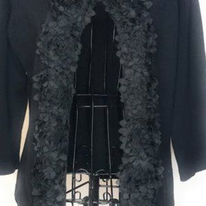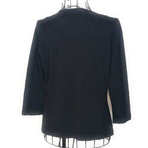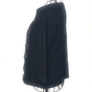 Women Black Open Front Lace Trim Career Work Office Cardigan Blazer Small