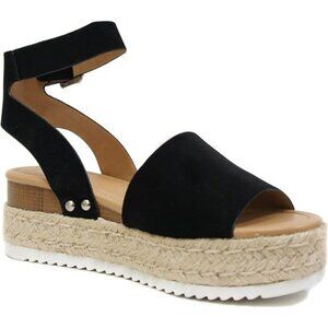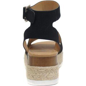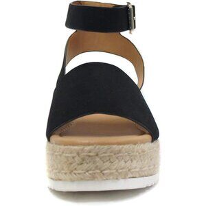 Women Black Open Toe Buckle Ankle Strap Espadrilles Flatform Wedge Casual Sandal