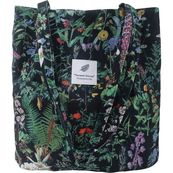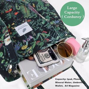 Super Durable Material Cute tote bag is made of reinforced stitching and high-quality corduroy. The handy bag is comfortable, durable, lightweight, and portable. Easy to cary on and built to last Lots of space Cord tote size is L 13.4*W 4.7*H 11.8 inch. This trendy tote bag can hold a binder, Chromebook, laptop, iPad, small notebook, sketchbooks, books, art supplies, your crochet supplies, knitting items, work items, etc. Perfect size to carry your stuff to college, work, hospital, travel, run errands Corduroy Purse Structure The cotton reusable tote features 3 top snaps for a secure closure , 2 inside pockets and longer handles. Simply fasten snaps to prevent contents from spilling