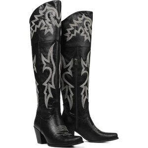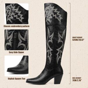 Size:These Black cowboy boots for women have a heel height of approximately 2.76 " and a shaft height of about 20.47 "