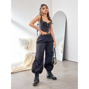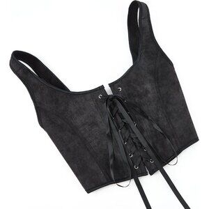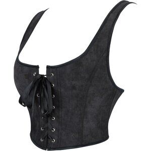 Women Black Renaissance Lace Up Tank Bustier Corset Top Vintage Square Neck