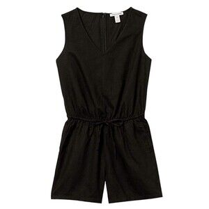 Women Black Romper Size 4 Linen Blend V Neck Drawstring