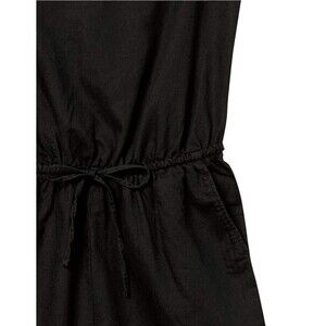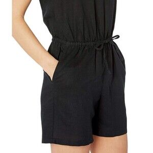 Women Black Romper Size 4 Linen Blend V Neck Drawstring