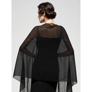Women Black Sequin Chiffon Shawls and Wraps Formal Rhinestone for Evening Dress