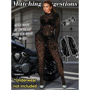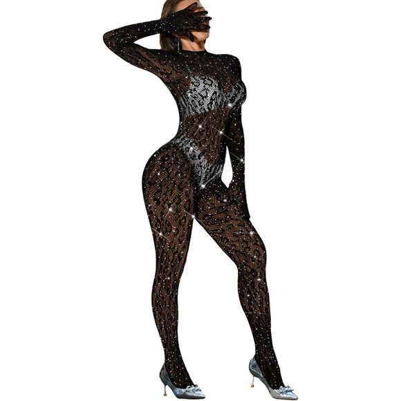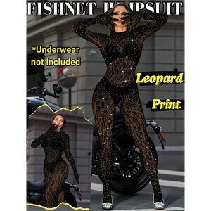 🆕Women Black Sexy Lace Jumpsuit Leopard Fishnet Bodysuit Outfits Mesh Lingerie