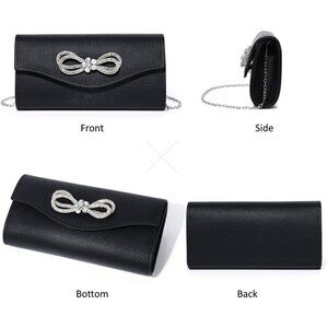 This exquisite Evening Clutch Bag exudes elegance with its high-quality glitter PU leather and luxurious shiny rhinestone bow embellishment. Its impeccable design features remarkable craftsmanship, ensuring long-lasting durability.