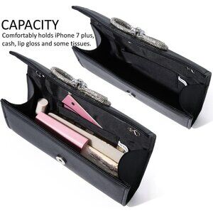 Perfect Size:This stunning Rhinestone Clutch Purse is designed with the perfect size of 10.62 x 5 x 1.96 inches (L x H x W), not too small or too big. It offers ample space for your small essentials such as your cell phone, lipstick/gloss, tissues, keys, credit cards, wallet, and more. The purse is lined with a lavish satin interior and features a soft slip pocket for added convenience.