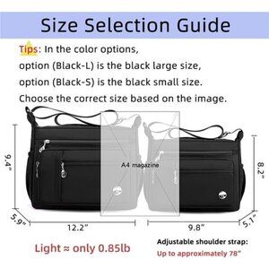 - Exterior Dimensions: Small: 9.8x 5.1x 8.2 inch (L x W x H).Large:12.2x 5.9 x 9.4 inch(L x W x H). Both sizes come with an adjustable strap.Two sizes of bags meet your