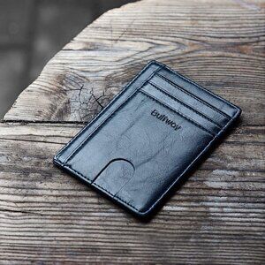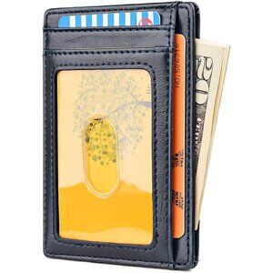 Women Black Slim Minimalist Front Pocket RFID Blocking Leather Wallets
