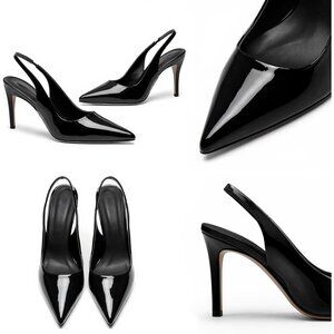 Women Black Slingback Stiletto Heels Closed Toe Pumps Slip On High Heels
