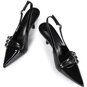 Sling back pumps: Adjustable ankle buckle make these beautiful shoes better fit your foot shape.
