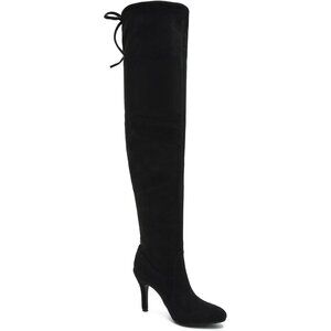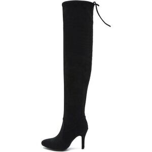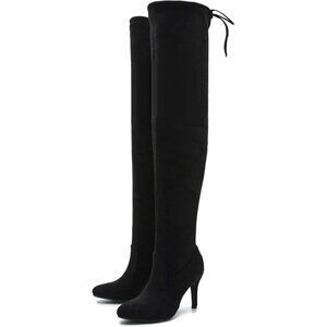 Women Black Suede Pointed Toe Over The Knee Thigh High Stiletto Heel Boot
