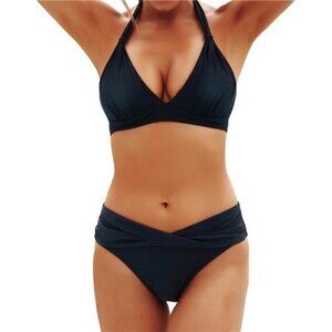 Women Black Two Piece Bathing Suits Push Up Bikini Set Halter Swimsuit