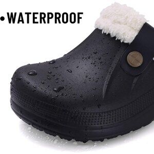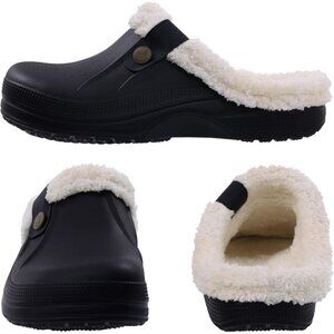 Women Black/White Clogs Waterproof Winter Fuzzy Slippers Classic Fur Lined