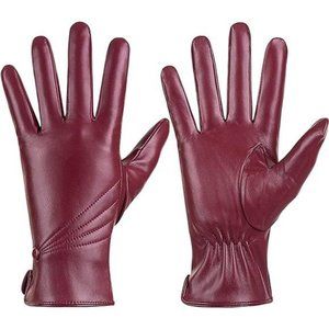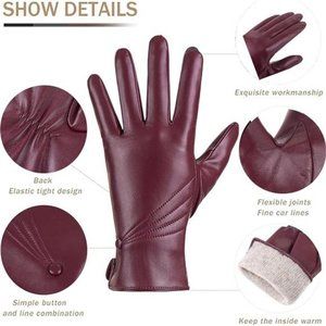Women BlackWinter Leather Warm Touchscreen Driving Texting Cashmere Lined Gloves