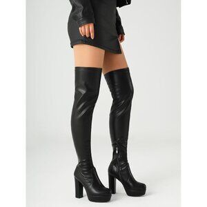 Faux Suede Elegance: Elevate your style with our Over Knee Platform Boots crafted from luxurious faux suede – a chic statement piece that seamlessly combines fashion and comfort.