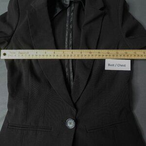 Women Blazer Jacket XS Black Retro Y2K Ruched Sleeve Minimalist Capsule Corpcore