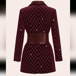 Women Blazer Style PU Velvet Diamond Jacket (With Belt)
