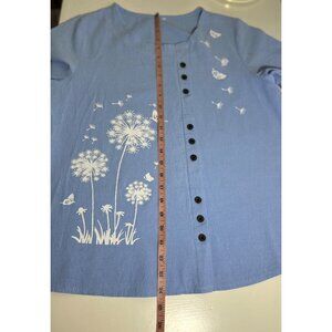 Women Blue Dandelion Butterflies Print Blouse Size L