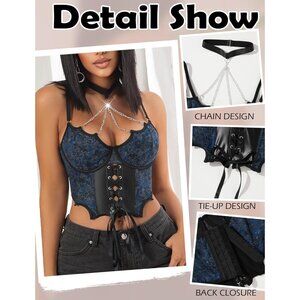 Women Blue Lace Up Bustier Corset Adjustable Drawstring Sleeveless Shapewear