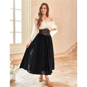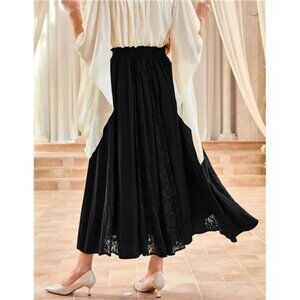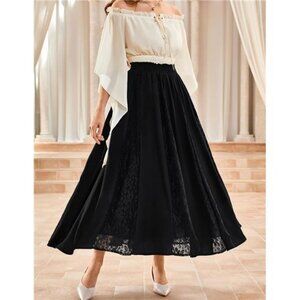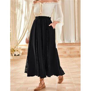 Women Boho Flowy Lace Patchwork Renaissance Long Skirts Black