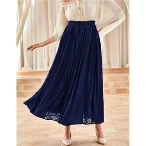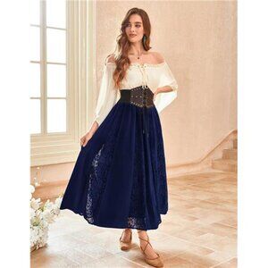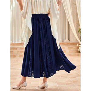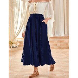 Women Boho Flowy Lace Patchwork Renaissance Long Skirts Blue
