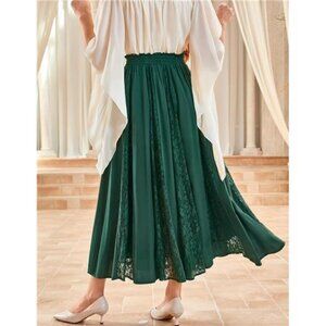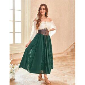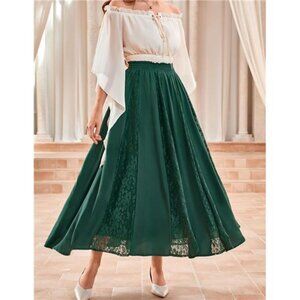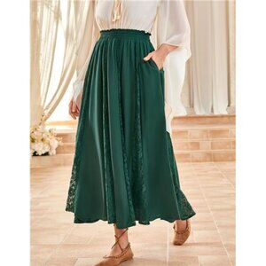 Women Boho Flowy Lace Patchwork Renaissance Long Skirts Green
