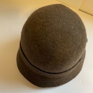 Women Brown 100% wool bucket hat with felt band ,side button , 2'' brim,