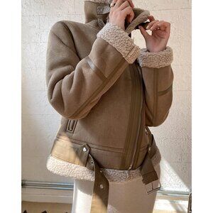 Faux-Shearling Jacket-extrmely soft and fluffy oversized motor parkas jacket, contrast color(faux fur and suede) makes this winter outerwear so stylish and cool