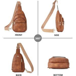 Women Brown Imported PU Leather Small Crossbody Chest Sling Fanny Travel Bag