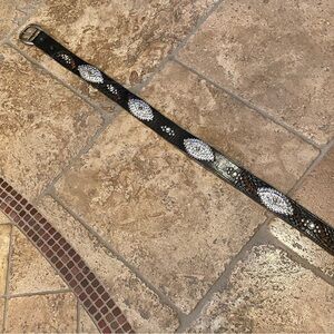 Women Brown Leather Embellished Rhinestone Bling Belt Size Large-Made in Mexico