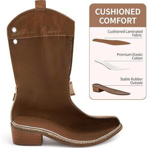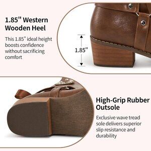 Premium Upper & Lining: These cowgirl boots for concerts feature a high-quality PU leather upper that is soft yet highly durable, and a soft synthetic lining that hugs the ankle comfortably without causing irritation.