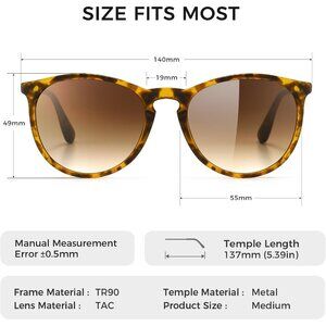 Lightweight All-Day Comfort: Trendy sunglasses featuring ultra-light frame with keyhole nose bridge, ensure no slipping, no pinching, just pure comfort from morning to night