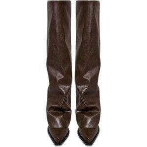 Women Brown Wide Calf Slouchy Shark Pointed Toe Fold Over Knee High Tall Boots