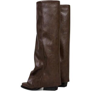 Fold Over Knee High Boots:Experience premium comfort with these Foldover knee-high boots,featuring polished PU leather and supportive footbeds.