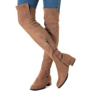 Women Brown/1 Inch Heel Faux Suede Over The Knee Thigh High Low Block Heel Boot