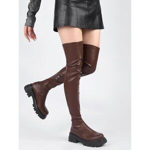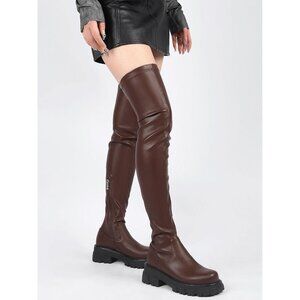 Women Brown-pu Synthetic Comfortable Thigh High Over The Knee High Boot