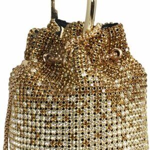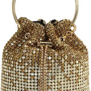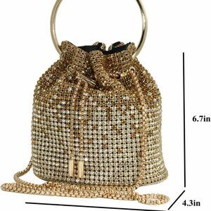 Classic Design: The rhinestone evening bag with bucket shape is simple and classic. Metal handle with rhinestones adds the perfect touch of sophistication, drawstring closure is easy to open and close.