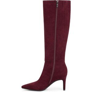 Women Burgundy Suede Faux Leather Pointed Toe Tall Stiletto Zipper Dress Boot