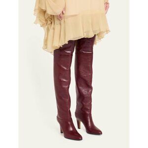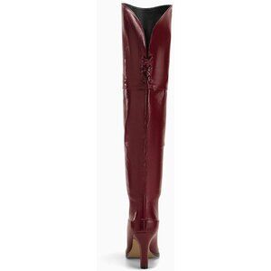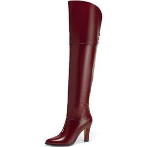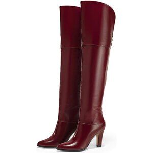 🆕Women Burgundy Synthetic Thigh High Pointed Toe Chunky Heel Over the Knee Boot