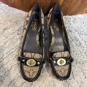 Women COACH KATRIN Signature “C” Logo Slip On Loafers A2439 Turn lock size 7.5