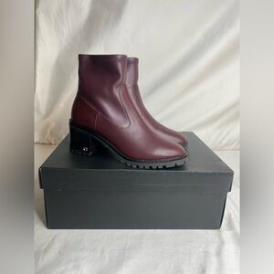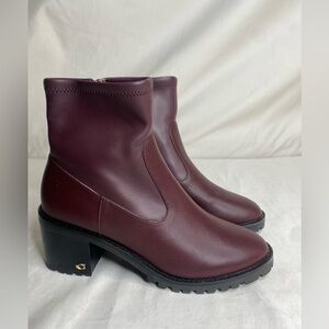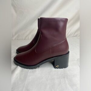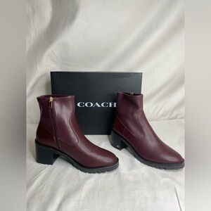 Women COACH purple Joy Leather block heel ankle Bootie New 7.5B